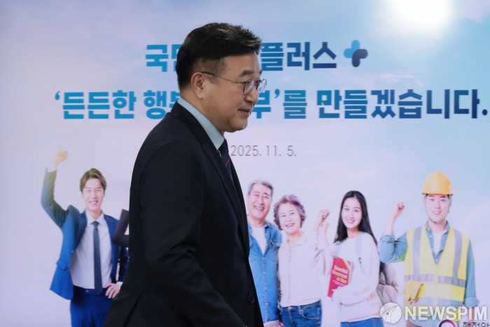 [서울=뉴스핌] 이길동 기자 = 윤호중 행정안전부 장관이 5일 서울 종로구 정부서울청사에서 열린 기자 브리핑을 하기위해 입장하고 있다.2025.11.05. gdlee@newspim.com