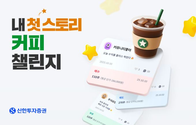[서울=뉴스핌] 송기욱 기자 = 신한투자증권은 오는 30일까지 신한 SOL증권 앱 내 커뮤니티 신규 가입 고객을 대상으로 '내 첫 스토리 커피 챌린지' 이벤트를 진행한다고 6일 밝혔다.