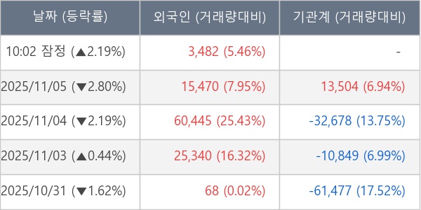 [표] 외국인ㆍ기관 순매매량 (단위 주)