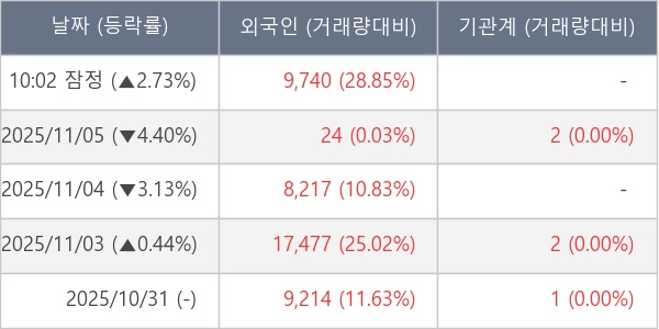 [표] 외국인ㆍ기관 순매매량 (단위 만주)