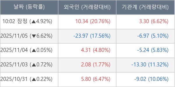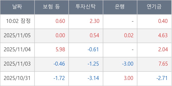 [표] 주요 기관별 순매매량 (단위 만주)