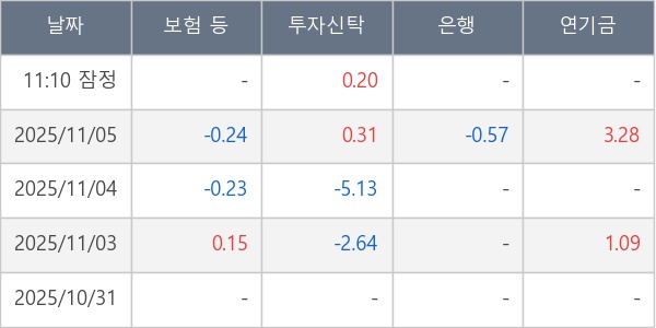[표] 주요 기관별 순매매량 (단위 만주)