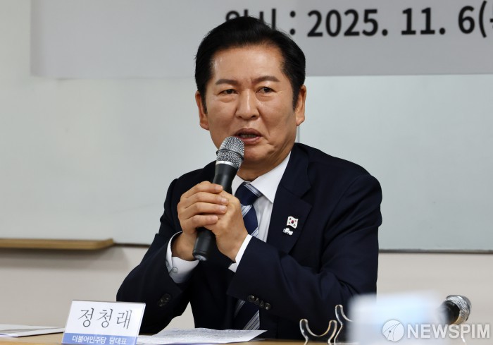 [서울=뉴스핌] 최지환 기자 = 정청래 더불어민주당 대표가 6일 오전 서울 중구 민주노총에서 열린 민주노총·민주당 정청래 대표 간담회에서 모두발언을 하고 있다. 2025.11.06 choipix16@newspim.com