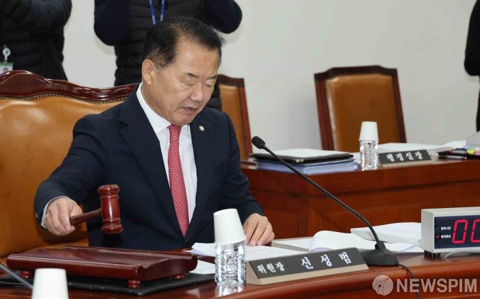 [서울=뉴스핌] 윤창빈 기자 = 신성범 국회 정보위원장이 6일 서울 여의도 국회 정보위원회에서 열린 경찰청에 대한 국정감사에서 의사봉을 두드리고 있다. 2025.11.06 pangbin@newspim.com