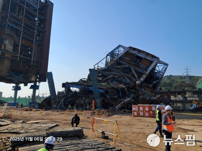 | 6일 오후 2시 6분께 울산 남구 용잠로 소재 한국동서발전 울산화력발전소에서 구조물이 붕괴돼 9명이 매몰됐다. [사진=울산소방본부] 2025.11.06 |