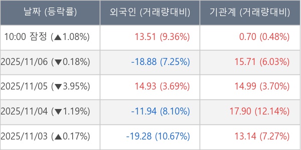 ※ 사모펀드 등 일부 기관의 순매매량은 표시되지 않음