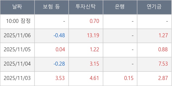 [표] 주요 기관별 순매매량 (단위 만주)