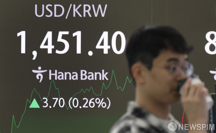 [서울=뉴스핌] 양윤모 기자 = 뉴욕증시가 'AI 거품' 우려 재개에 하락 마감한 가운데, 7일 오전 코스피가 전장 종가보다 51.99 포인트(1.29%) 하락하며 3974.46으로, 코스닥은 14.77 포인트(1.64%) 하락한 883.40으로 장을 시작한 가운데, 서울 중구 하나은행 딜링룸에서 직원들이 업무를 보고 있다. 서울외환시장에서 달러/원 환율은 전장 대비 3.70원 상승한 1451.40원에 거래를 시작했다. 2025.11.07 yym58@newspim.com