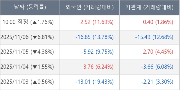 ※ 사모펀드 등 일부 기관의 순매매량은 표시되지 않음