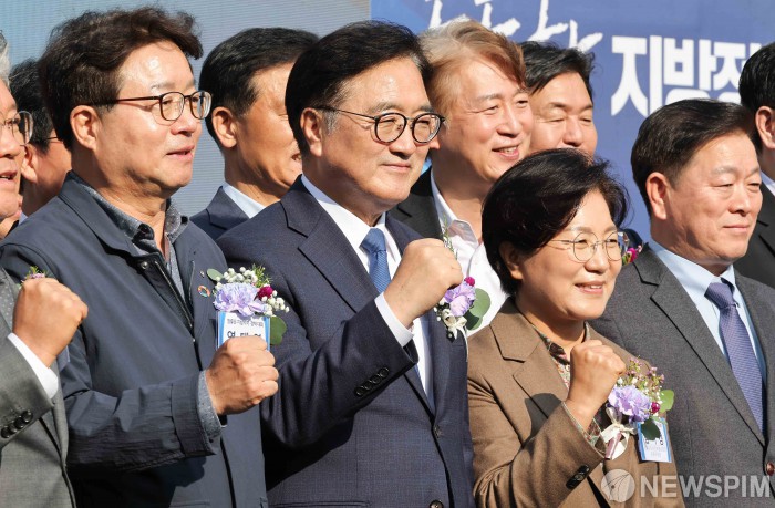 [서울=뉴스핌] 윤창빈 기자 = 우원식 국회의장을 비롯한 참석자들이 7일 서울 여의도 국회 사랑재에서 열린 2025 참좋은 지방자치 정책대회에서 기념촬영을 하고 있다. 2025.11.07 pangbin@newspim.com
