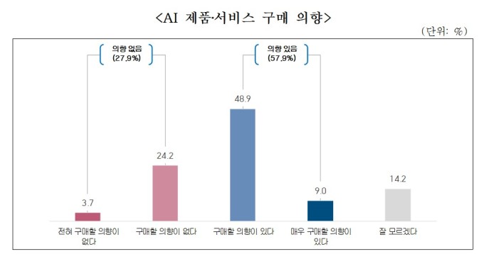 한편 소비자 3000명을 대상으로 AI 제품과 관련한 인식조사를 실시했다. 조사 결과 응답자의 57.9%가 AI 기술이 적용된 제품이 더 비싸더라도 구매 의향이 있다고 답했으며, 이들은 평균 20.9%의 추가 금액을 지불할 의사가 있다고 밝혔다.