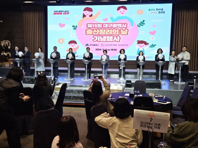 [대구=뉴스핌] 김용락 기자=대구광역시는 오는 11일 라온제나 호텔 레이시떼 홀에서 다자녀 모범가정과 출산장려 유공자, 구·군 공무원 등 150여 명을 초청해 '제16회 출산장려의 날' 기념행사를 개최한다.