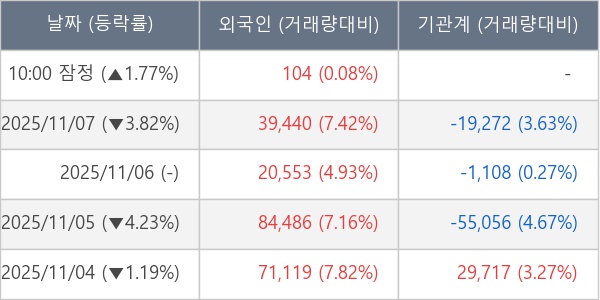 [표] 외국인ㆍ기관 순매매량 (단위 주)