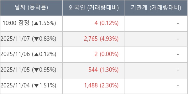 [표] 외국인ㆍ기관 순매매량 (단위 주)