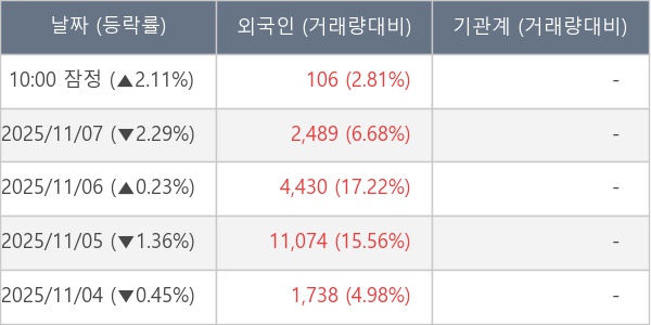[표] 외국인ㆍ기관 순매매량 (단위 주)