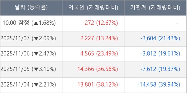 [표] 외국인ㆍ기관 순매매량 (단위 주)