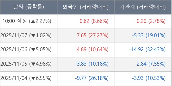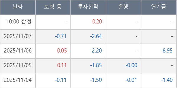 [표] 주요 기관별 순매매량 (단위 만주)