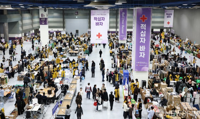 [서울=뉴스핌] 최지환 기자 = 10일 오후 서울 강남구 코엑스에서 열린 2025 적십자 바자를 찾은 시민들이 물품을 고르고 있다. 2025.11.10 choipix16@newspim.com