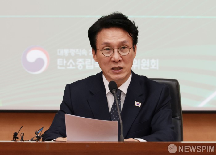 [서울=뉴스핌] 이길동 기자 = 김민석 국무총리가 10일 서울 종로구 정부청사 별관에서 열린 2050 탄소중립녹색성장위원회 전체회의를 주재하며 모두 발언을 하고 있다.2025.11.10 gdlee@newspim.com
