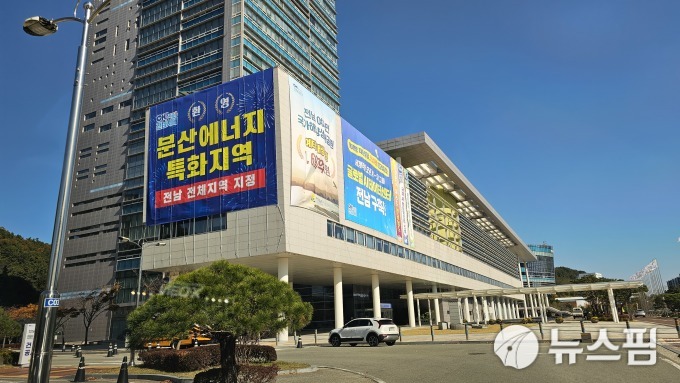 | 10일 전남도청에 분산에너지 특화지역 지정 홍보 현수막이 걸려 있다. [사진=조은정 기자] 2025.11.10 ej7648@newspim.com |