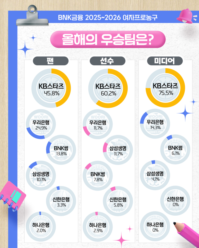 | [서울=뉴스핌] 장환수 스포츠전문기자= 챔프전 우승팀 투표 결과. [사진=WKBL] 2025.11.10 zangpabo@newspim.com |