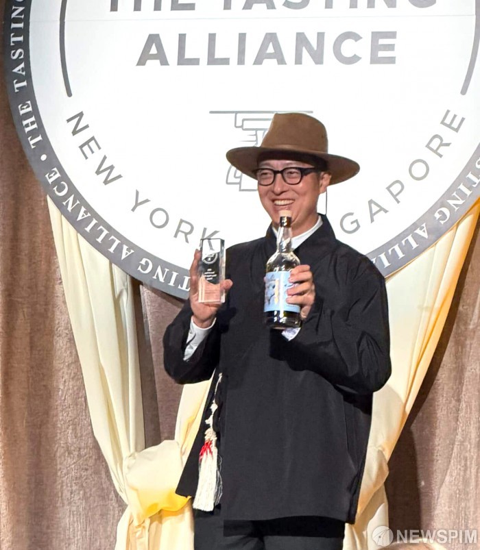 [서울=뉴스핌] 양윤모 기자 = 도정한 '기원 위스키 ' 대표가 9일(현지시각) '샌프란시스코 세계주류경연대회 2025'에서 대상에 해당하는 베스트 오브 클래스(Best of Class)를 수상후 트로피와 기원 '시그니처'를 들고 포즈를 취하고 있다. 기원 위스키는 한국 최초의 싱글몰트 위스키로, 2020년 6월부터 경기도 남양주에서 생산되고 있다. 증류소의 설립에 재미교포 창립자, 스코틀랜드 출신 마스터 디스틸러, 그리고 한국 직원들이 함께 참여했으며, 전통 스카치 방식과 장인정신을 강조하여 생산 과정을 직접 확인하는 등 높은 품질 기준을 유지하고 있다. [사진=기원 위스키] 2025.11.10 yym58@newspim.com
