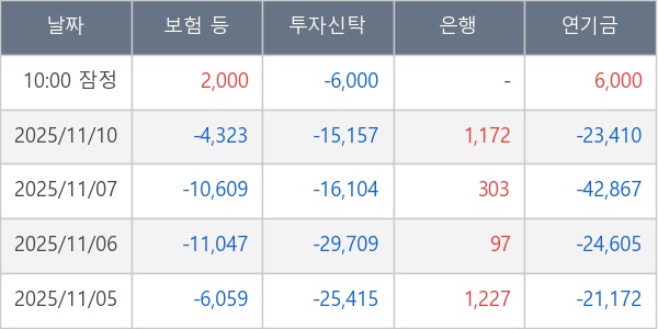 [표] 주요 기관별 순매매량 (단위 주)