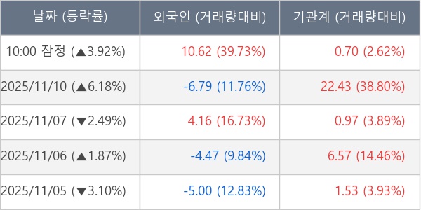 ※ 사모펀드 등 일부 기관의 순매매량은 표시되지 않음