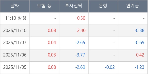 [표] 주요 기관별 순매매량 (단위 만주)