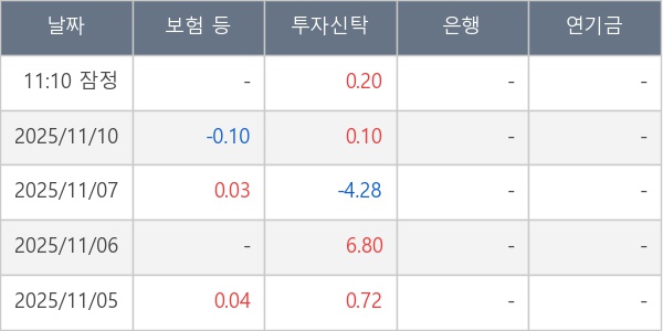 [표] 주요 기관별 순매매량 (단위 만주)