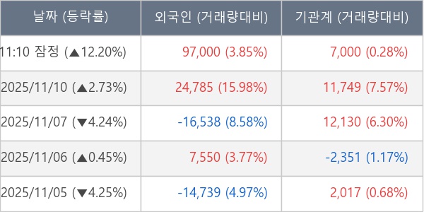 ※ 사모펀드 등 일부 기관의 순매매량은 표시되지 않음