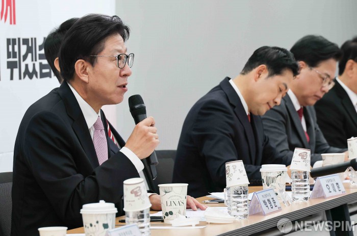 [서울=뉴스핌] 윤창빈 기자 = 박형준 부산시장이 12일 서울 여의도 국민의힘 중앙당사에서 열린 지방선거총괄기획단 및 시·도 광역단체장 연석회의에서 모두발언을 하고 있다. 2025.11.12 pangbin@newspim.com