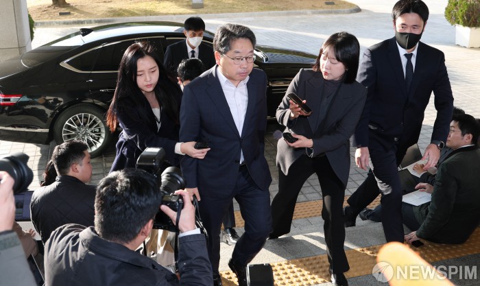[서울=뉴스핌] 양윤모 기자 = 대장동 사건 항소 포기 사태로 검찰 내부에서 사퇴 압박을 받는 노만석 검찰총장 직무대행이 하루 휴가를 마치고 12일 오전 업무복귀를 위해 대검찰청 청사로 출근하고 있다. 2025.11.12 yym58@newspim.com