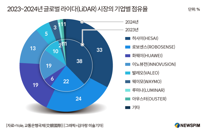 또한 허사이는 9월 말에 올해 들어 100만번째 라이다를 출하하며, 연간 생산량 100만 대를 돌파한 세계 최초의 라이다 기업이 됐다.
