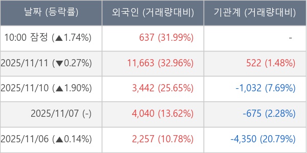 [표] 외국인ㆍ기관 순매매량 (단위 주)
