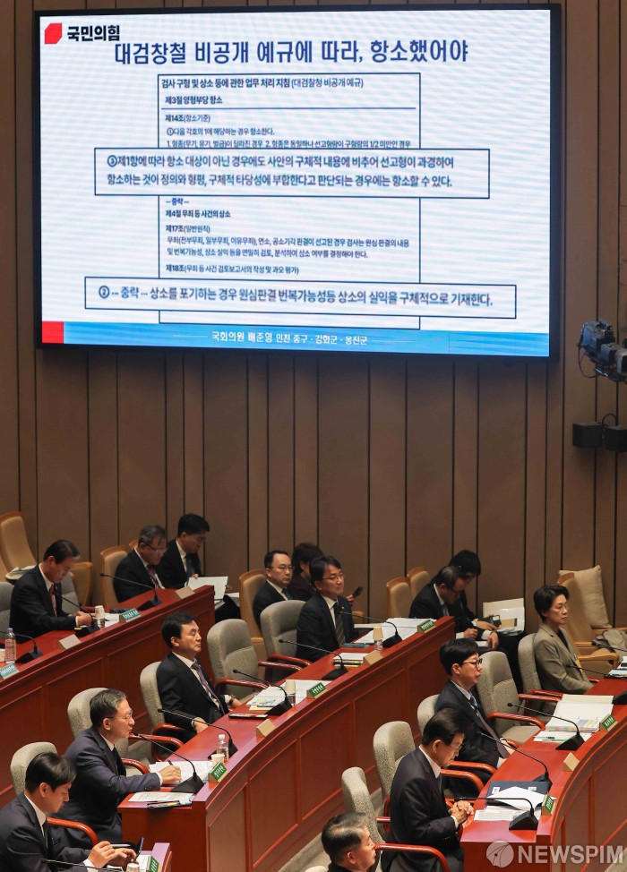 [서울=뉴스핌] 윤창빈 기자 = 정성호 법무부 장관이 12일 서울 여의도 국회에서 열린 예산결산특별위원회 전체회의에서 배준영 국민의힘 의원의 대장동 재판 항소 포기와 관련한 질문에 답변하고 있다. 2025.11.12 pangbin@newspim.com