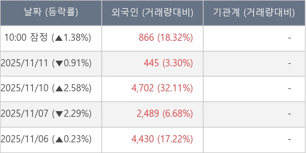 [표] 외국인ㆍ기관 순매매량 (단위 주)