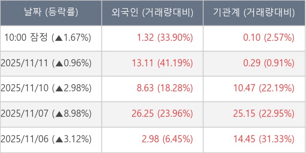 ※ 사모펀드 등 일부 기관의 순매매량은 표시되지 않음