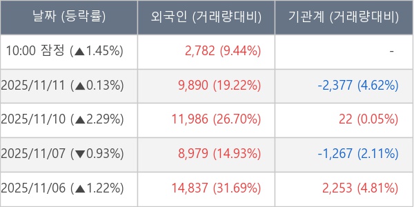 [표] 외국인ㆍ기관 순매매량 (단위 주)