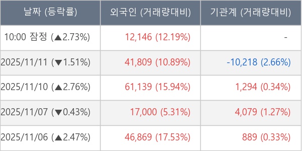 [표] 외국인ㆍ기관 순매매량 (단위 주)