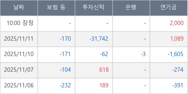 [표] 주요 기관별 순매매량 (단위 주)