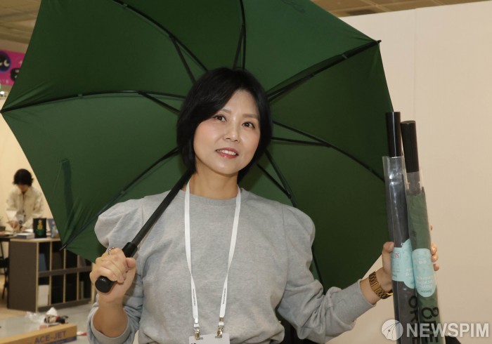 [서울=뉴스핌] 양윤모 기자 = 국내 디자인 업계 최신 흐름을 한눈에 볼 수 있는 '2025 서울디자인페스티벌'이 12일 서울 강남구 코엑스에서 열린 가운데, '에이트린'이 버려진 플라스틱으로 만든 친환경 우산을 선보이고 있다. 올해로 24회를 맞은 이번 행사는 '디자인하우스'가 주최, '월간 디자인'이 주관하고, 크리에이티브 그룹 '레벨나인(Rebel9)'이 아트 디렉터를 맡았으며 16일까지 열린다. 2025.11.12 yym58@newspim.com