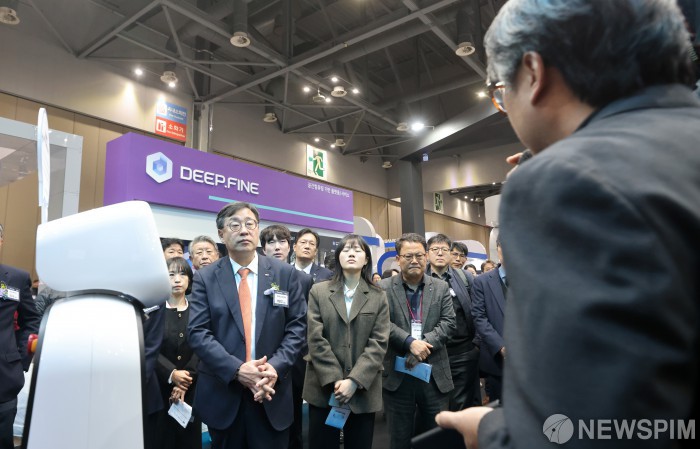 [고양=뉴스핌] 최지환 기자 = 박윤규 정보통신산업진흥원 원장과 설재진 과학기술정보통신부 디지털콘텐츠과장이 12일 경기 고양시 킨텍스에서 열린 2025 대한민국 가상융합산업대전(KMF2025)에서 전시부스를 둘러보고 있다. 'AI와 만난 가상융합, 모두의 일상이 되다!'를 주제로 열린 'KMF2025'는 오는 14일까지 3일간 진행된다. 2025.11.12 choipix16@newspim.com