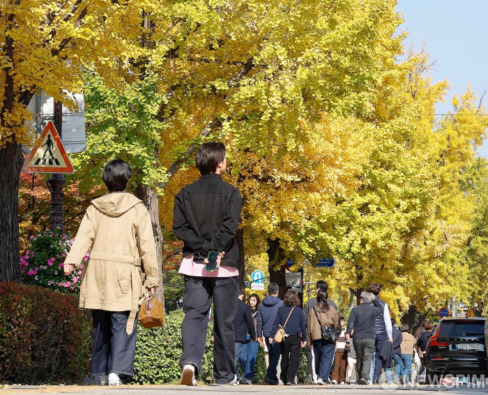 | [서울=뉴스핌] 류기찬 기자 = '2026학년도 수학능력시험일'인 13일은 날씨가 포근할 것으로 전망된다. 사진은 지난 7일 오후 서울 종로구 삼청로 일대 은행나무가 노랗게 물들어있는 모습. 2025.11.07 ryuchan0925@newspim.com |
