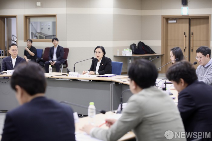 [서울=뉴스핌] 한성숙 중소벤처기업부 장관이 12일 인천 국제우편물류센터에서 열린 '중소기업 온라인 수출 활성화 방안 발표 및 현장 간담회'에서 모두 발언을 하고 있다. [사진=중소벤처기업부] 2025.11.12 photo@newspim.com