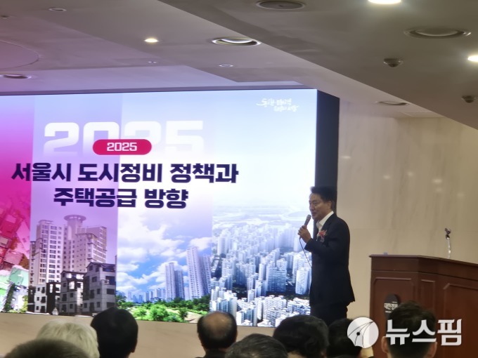 | 12일 오세훈 서울시장이 서울 정비사업 조합원을 대상으로 한 기조 강연을 하고 있다. [사진=정영희 기자] |