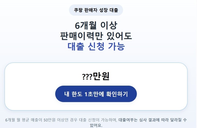 | 쿠팡이 일부 판매자들에 오픈한 '쿠팡 판매자 성장 대출' 신청 페이지. |