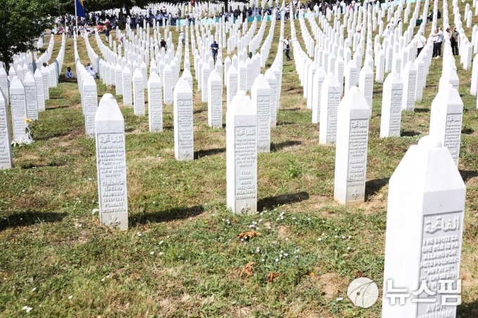| 1990년대 보스니아 전쟁 당시 세르비아계에 집단 학살을 당한 무슬림 주민들이 묻인 묘지. [사진=로이터] |