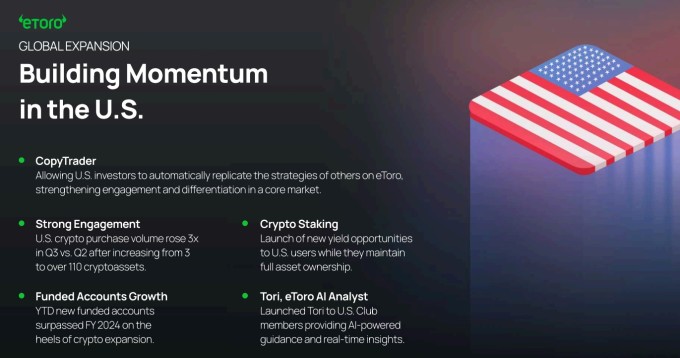 이토로의 자금 입금 계좌 대부분은 유럽에 집중되어 있으며, 미주 지역은 전체의 약 10%에 불과하다. 이스라엘에 본사를 둔 이토로는 이러한 지역적 편중을 해소하고 새로운 성장 동력을 확보하기 위해 미국 시장 확대에 적극 나서고 있다.