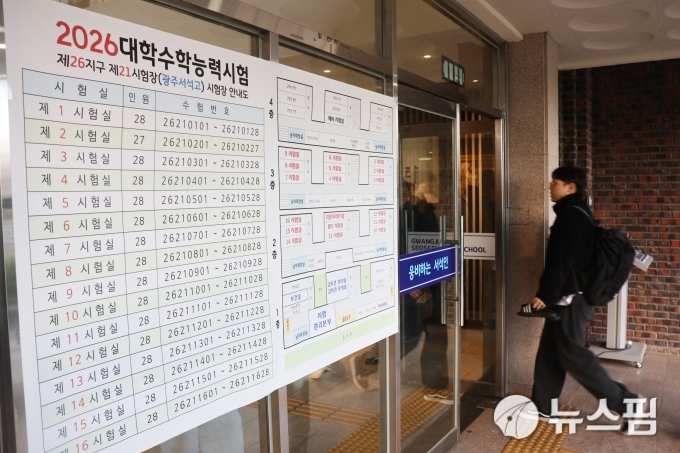 [광주=뉴스핌] 박진형 기자 = 2026학년도 대학수학능력시험이 시행된 13일 오전 광주 서석고등학교에 마련된 광주시교육청 제26지구 제21시험장으로 수험생들이 입실하고 있다. 2025.11.13 bless4ya@newspim.com